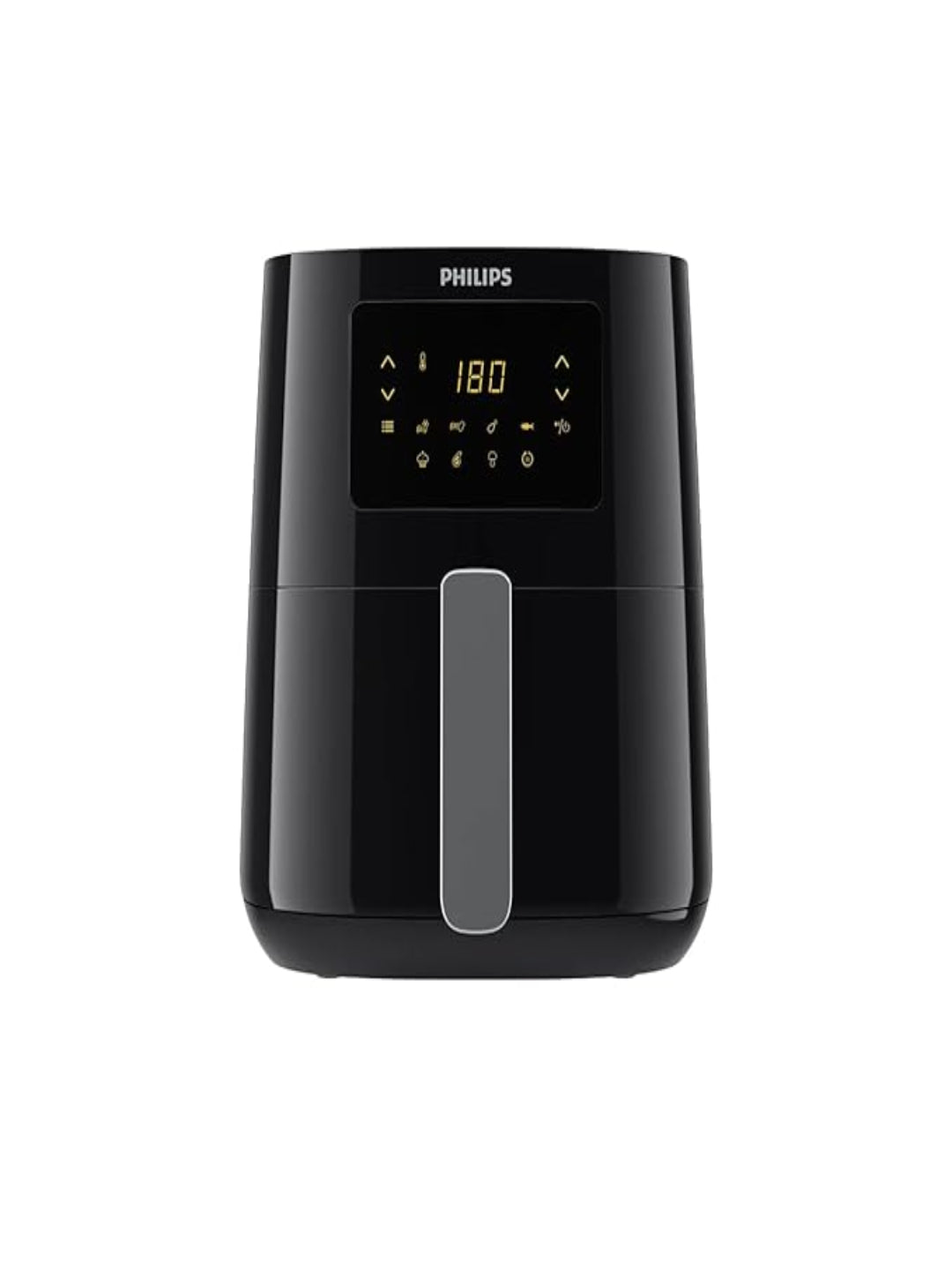 The Philips Air Fryer HD9252/70 is a 4.1L digital air fryer that uses Rapid Air Technology to cook food with up to 90% less fat, featuring a starfish-design pan for even cooking. It has a touch panel with 7 preset programs for foods like fries, chicken, and fish, along with a keep warm function, and an auto-shutoff feature. The parts are dishwasher-safe, and the product is designed for frying, baking, grilling, roasting, and reheating