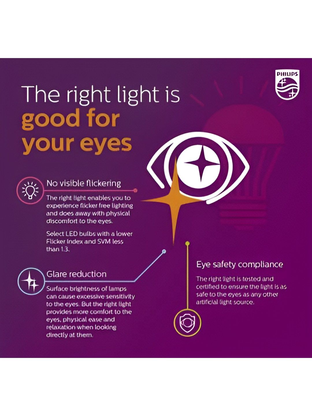 The right light enables you to experience flicker free lighting and does away with physical discomfort to the eyes. Select LED bulbs with a lower Flicker Index and SVM less than 1.3.